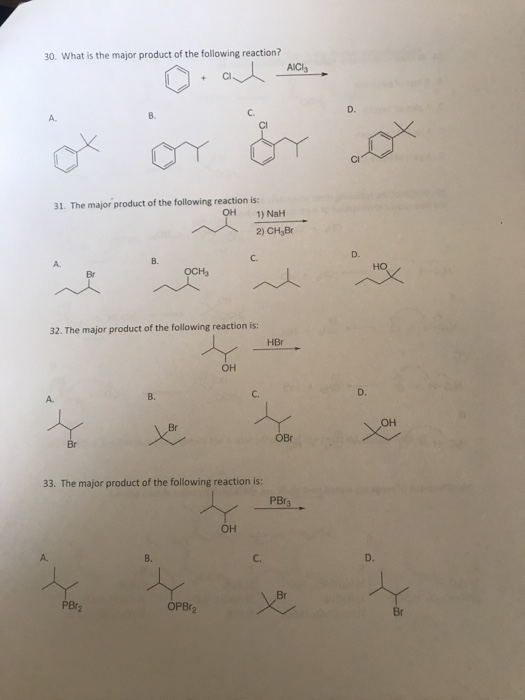 Even if somehow there was a hydride shift the reaction would yield nearly none of the tertiary alkyl product because there is far too much steric hindranceelectronic repulsionmolecular orbital misalignment for. А В D What is the product of the following reaction. What is the major product of the following reaction.
