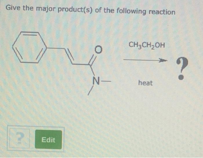 Solved Give The Major Product S Of The Following Reaction Chegg Com